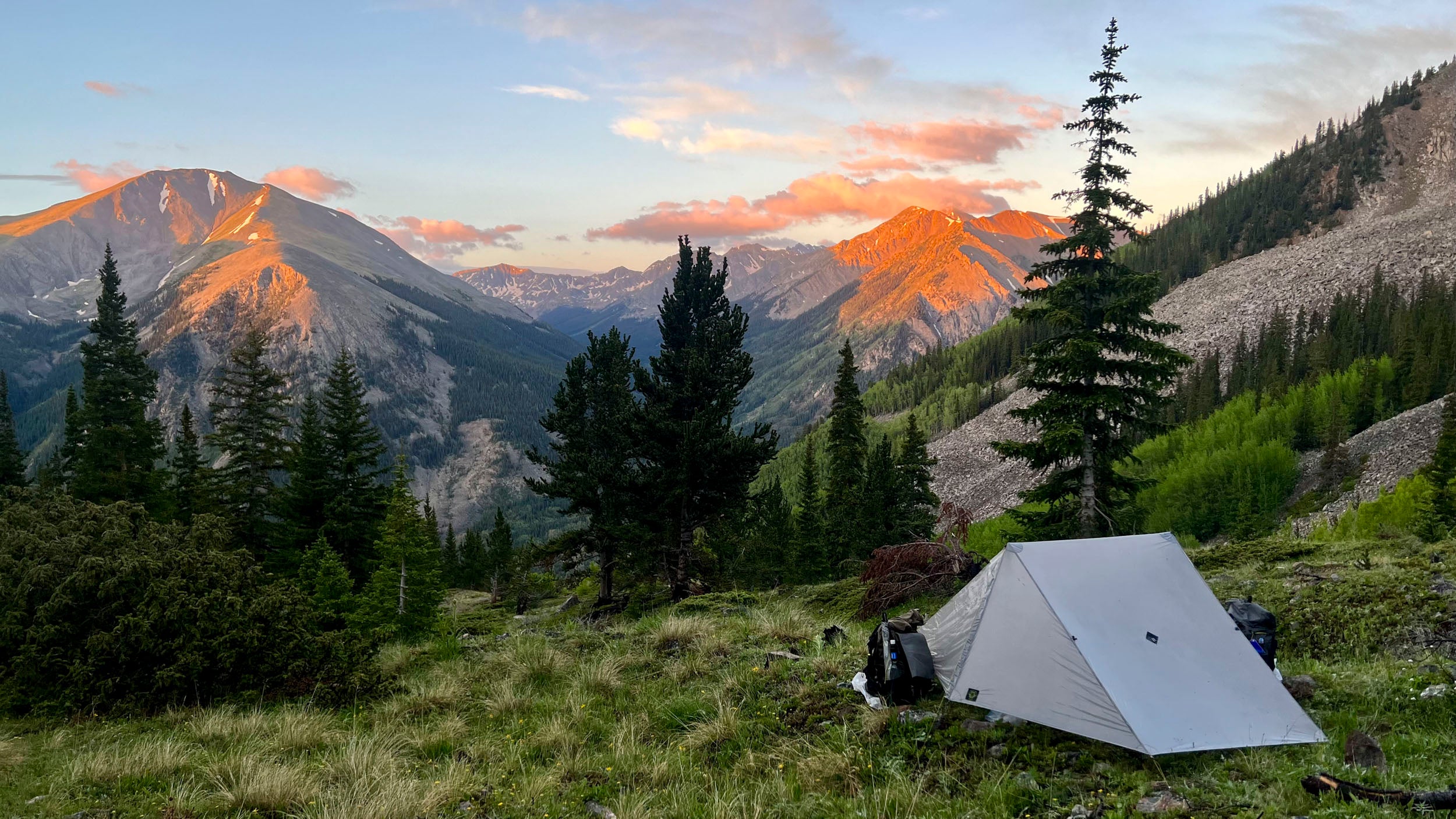 Here's Mandy "Veggie" Redpath's sick setup. Featuring the Haven Ultralight Tent, Swift X Backpack, and Silver Shadow Umbrella. Along with a killer view.