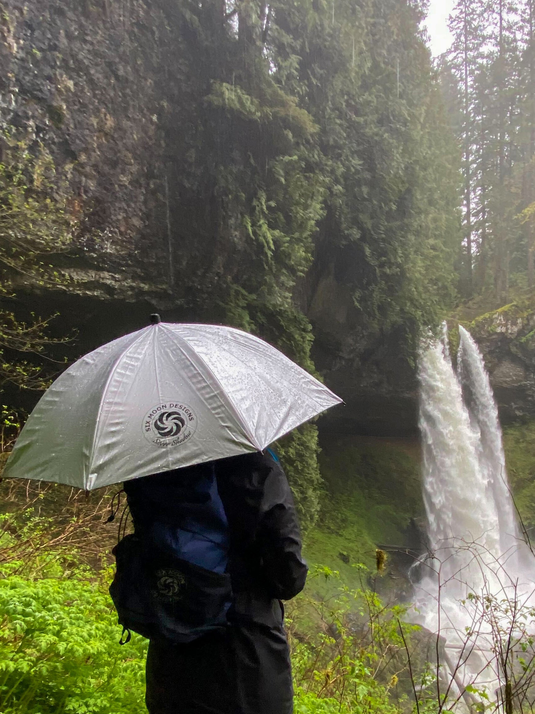 The Silver Shadow Series provides a large reflective surface on top to deflect sunlight and a black underside to absorb wandering rays, allowing you to walk cooler and better protected. Its coating sheds water easily, eliminating the need to wear sweaty rain gear.